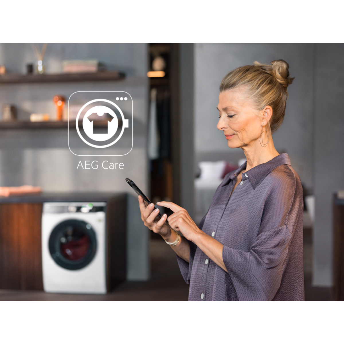 S aplikáciou My AEG Care si vytvorte vlastné nastavenia a získajte chytré tipy a odporúčania. Prispôsobte si cykly prania na mieru a dávajte spotrebiču pokyny na lepšie prispôsobenie sa vašim potrebám a zvyklostiam Inteligentná a ľahká starostlivosť prostredníctvom vášho chytrého telefónu.
