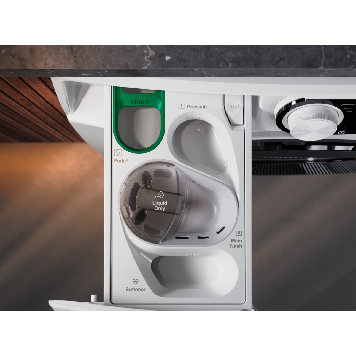 UniversalDose je patentovaná jedinečná zásuvka navrhnutá na použitie pracích kapsúl. Kapsule sa v UniversalDose rozpustia vďaka inovatívnemu systému vodných trysiek o 60 % rýchlejšie než pri vložení do bubna. V priebehu hodinového programu tak UniversalDose prináša extra výkon a odstráni škvrny aj pri nízkych teplotách.