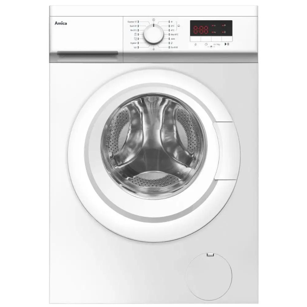 Spredu plnená práčka, Amica GWAS610DL, Energetická trieda D, Max. náplň bielizne 6 kg, Max. počet otáčok 1000 ot./min., Spotreba energie na 100 cyklov 65 kWh, Spotreba vody na cyklus 43 l, Hlučnosť 80 dB, Ovládací panel so symbolmi, Celkový počet programov 15, Detský zámok, Zvukový signál ukončenia prania, Funkcia odložený