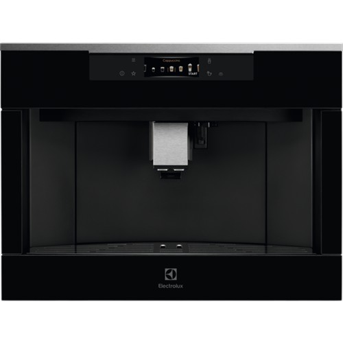 Vstavaný kávovar; Electrolux 800 EBC95T; Výška (cm): 45; Ovládanie: Elektronické, dotykové, Cook Smart Touch; Kapacita mlýnku na kávu (g): 350; Objem nádrže na vodu (l): 2,5; Automatická funkcia na pripravu espressa: Ano; Automatická funkcia na pripravu cappuccina: Ano; Podsvícenie kávovaru: Ano; Farba: Matt Black; Vybavenie: Termokonvica až na 6 šálků