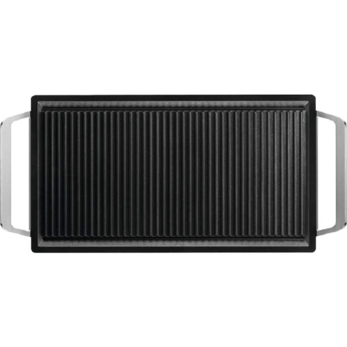 Elektrický gril, veľká grilovacia doska z masívnej zliatiny s nepriľnavým granitovým povrchom (55 x 41 cm), samostatná doska so zapusteným ohrevným telesom pre ľahké čistenie, poklop na urýchlenie prípravy pokrmov (grilovanie celého kurčaťa alebo väčších kúskov mäsa), otvor v poklope pre výstup pary, rýchly ohrev na vysokú teplotu 250°C
