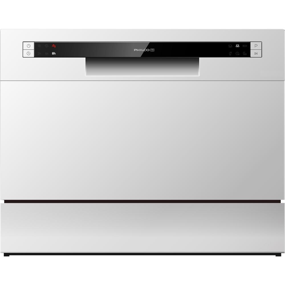 Stolová umývačka Philco PDT66F s prehľadom umyje až 6 jedálenských súprav, najlepšie riešenie pre domácnosti, kde z dôvodu nedostatku miesta nie je možné umiestniť klasickú umývačku riadu. Je vybavená 6 programami napr. rýchle, EKO, sklo a intenzívne umývanie aj odloženým štartom., Stolová umývačka riadu, PDT 66 F, Vlastnosti, Počet programov
