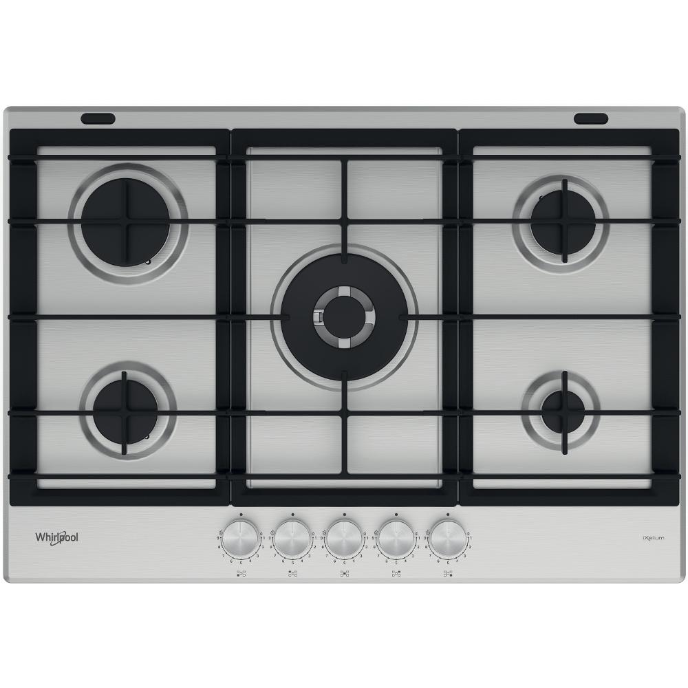 Plynová varná doska, Vlastnosti, Povrch varnej dosky iXelium, Farba nerez + iXelium™, Úprava povrchu proti odtlačkom prstov, Ovládanie gombíky - MultilevelFlame, Počet varných zón 5, Umiestnenie ovládacieho panelu vpredu, Výkonný dvojkorunkový horák, Zapaľovanie horákov integrované, Bezpečnostné ventily horákov, Druh mriežky liatinová, Počet mriežok 3, Platne, Predná ľavá platňa stredná, Priemer