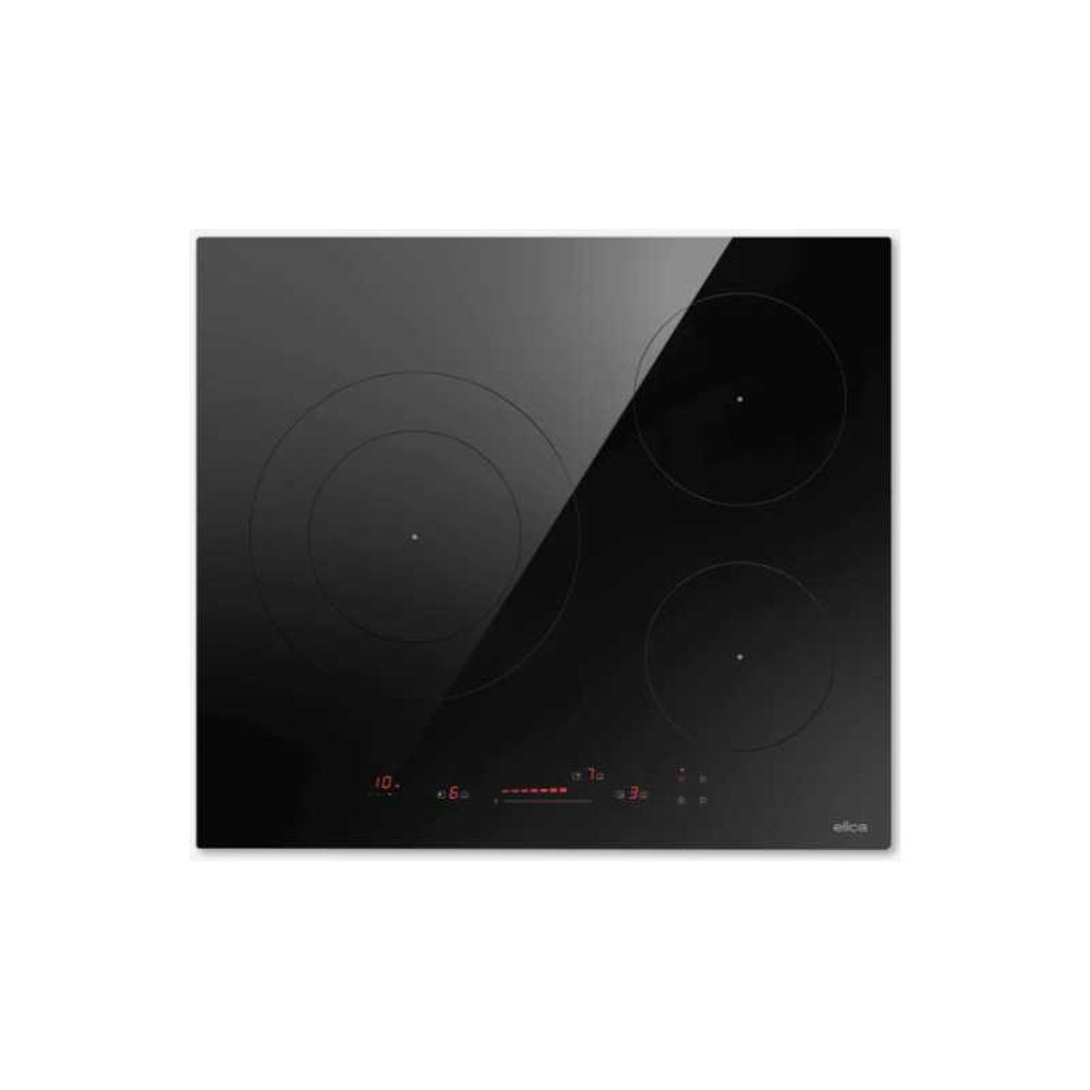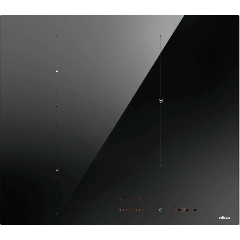 RATIO 603 BL od Elica je indukčná varná doska s rozmerom 60 cm s 2 normálnymi zónami a 1 extra veľkou zónou s vyšším výkonom, ideálna do steakhouse. Celý čierny sklenený vzhľad vytvára minimalistickú a elegantnú varnú zónu, ktorá takmer mizne v hornej časti modernej kuchyne., Popis, Vstavaná indukčná varná