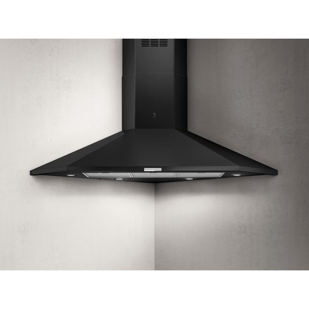 ELICA Acuta je rohový odsávač pár (digestor) z čierneho lakovaného kovu. Odsávač pár s výkonom 270-515 m3 / h a v intenzívnom výkone až 625 m3 / h, milo prekvapí hlučnosťou iba 46-65 db (A)., Odsávač pár (digestor) je opatrený osvetlením LED s výkonom 4x2,5W a teplotou 3500K., Odsávač pár