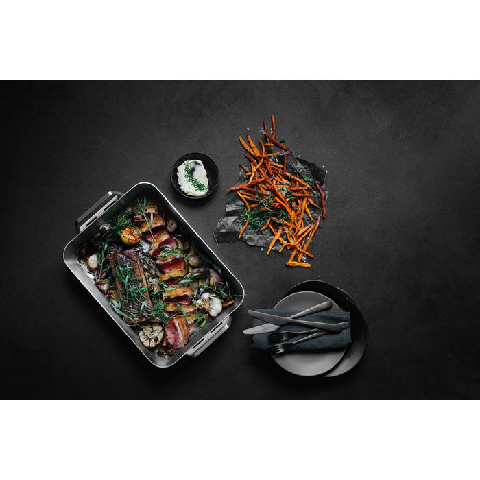 Restovací pekáč s vekom z radu AEG Mastery je profesionálny riad, s ktorým si vychutnáte šťavnaté a krehké jedlá. Pripravíte v ňom dusené pokrmy i restované mäsá či zeleninu. Ponúka možnosť varenia na varnej doske aj v rúre, preto je možné kombinovať prípravu najprv osmahnutím alebo predvarením na varnej doske a potom dokončením v rúre. Všetky vône i chute zostanú vo vnútri hrnca. Na varnú dosku aj do rúry je ideálny tiež svojou veľkosťou a tvarom. Pre ľahší presun z varnej dosky do rúry či naopak poslúžia dve rukoväte. Šírka výrobku: 29.1 cm. Výška výrobku: 7.8 cm. Hĺbka výrobku: 29.1 cm. Hmotnosť výrobku: 4.1 kg