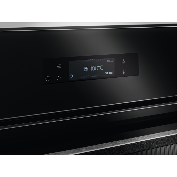 - Elektronické funkcie: 255 predpripravených varných programov Assist (senzor hmotnosti/pokrmu/para/SousVide), 3 obľúbené programy, 30 jazykov, akustický signál, automatické vypnutie (len rúry), nastaviteľná hlasitosť zvukového upozornenia, Check Result (Finish Assist by remaining 10% duration), Child lock (in off mode), minútka pre čistenie, Clock style in standby (2 versions), čas varenia, čas varenia s odhadovaným koncom, vypúšťanie pary, demo program s kódovaním, odstraňovanie vodného kameňa, denný čas, nastavenie tvrdosti vody, nastavenie jasu displeja, Display Full colour TFT touch 95x35mm, Drying function after cavity steaming, elektronická regulácia teploty, rýchle predohriatie s výberom možností, senzor pokrmu, automatické vypnutie senzoru pokrmu, ukazovateľ teploty senzoru pokrmu, senzor pokrmu s odhadom času, udržiavanie teploty 65°C rozšírené o pečenie pri nízkej teplote a nastavenie senzoru pokrmu, tóny tlačidiel a tóny alarmu a chýb – aktivácia / deaktivácia (okrem ZAP/VYP), jazyky / textový displej, hlavný vypínač, denná pamäť 3 dni späť, minútka, zapnutie/vypnutie osvetlenia rúry (menu + samostatné tlačidlo), ukazovateľ skutočnej teploty (°C) , indikácia zvyškového tepla (°C), využitie zvyškového tepla, preplachovanie, servisné informácie, čistenie parou (2 cykly: Steam Cleaning, Steam Cleaning Plus), vypnutie času dňa v stave vypnutia, odporučaná teplota