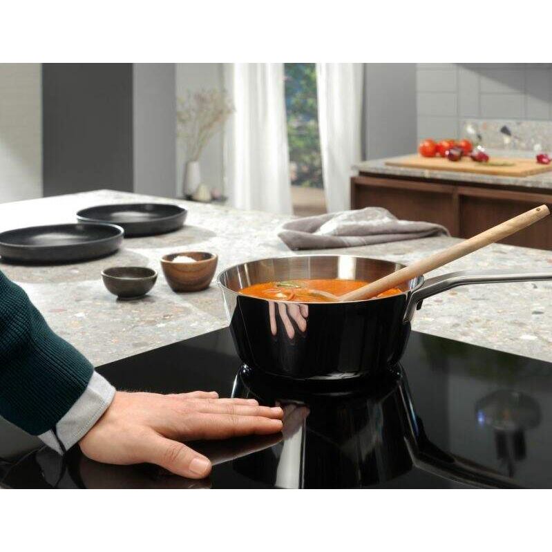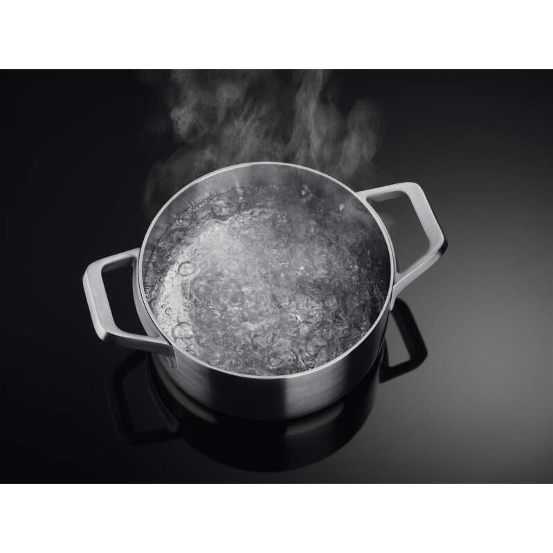 Indukčná varná doska AEG Mastery IKB64413FB v prevedení čierneho skla so skosenými hranami ponúka zóny s rôznym výkonom a s funkciou zvýšenia výkonu . Ak potrebujete vaše jedlo rýchlo zohriať, určite využijete funkciu Booster. Pre bezpečnosť detí je je doska vybavená detským zámkom. Ovládanie je posuvné dotykové s osvetlením, umiestnené v prednej časti. Detekcia nádoby zaistí, aby sa vaša varná zóna zohriala len vtedy, keď je na nej panvica alebo hrniec. Pre prerušenie varenia je veľmi zaujímavá funkcia Pause, ktorá vám ušetrí zbytočné vypínanie, zapínanie a nastavovanie teploty. Varná doska AEG Mastery IKB64413FB je vybavená aj minútkou a ukazovateľom času. Nechýba akustický signál.