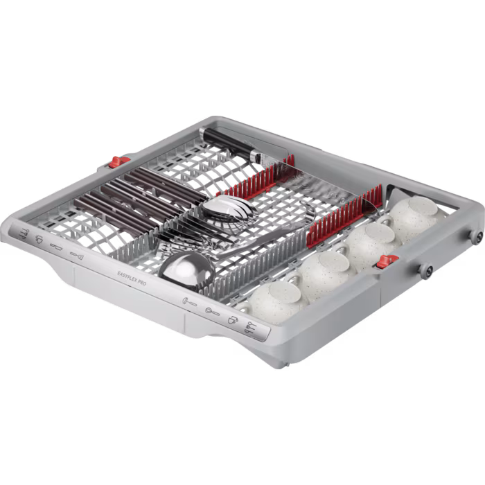 Koše EasyFlex Pro sa plynulo vysúvajú a všetky časti sa dajú sklopiť pre maximálnu flexibilitu. Protišmykové gumové úchyty a hroty bezpečne držia poháre na stopke aj ostatné poháre a bránia ich vzájomnému narážaniu. Do zásuvky na príbor sa zmestia metličky, naberačky aj malé šálky.