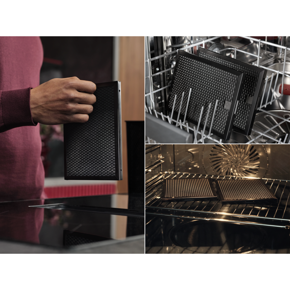 Tukový filter a uhlíkový filter s dlhou životnosťou sa ľahko umývajú v umývačke, vďaka čomu zostane vzduch vo vašej kuchyni svieži a váš odsávač si dlhšie zachová optimálny výkon. Uhlíkové filtre sa dajú po vyčistení až 8-krát regenerovať, čo predĺži ich životnosť až na 3 roky.