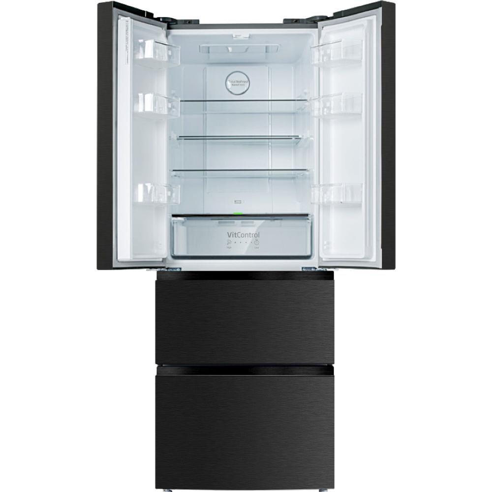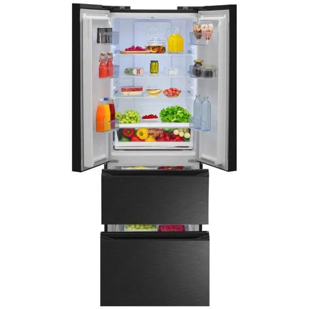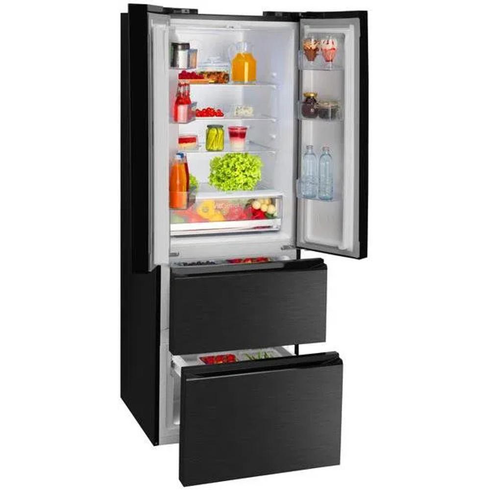 FY3269.6DFBX French door chladničkaAMICA, Americká chladnička AMICA FY3269.6DFBX patrí medzi nadštandardne objemné modely. Dobre zapadne do priestranných kuchýň a jej funkcie zaujmú aj náročnejších záujemcov. Je to voľne stojaca chladnička, ktorú môžete rovno umiestniť do kuchyne bez väčších úprav interiéru. Americká chladnička má typické otváranie dverí do dvoch strán, ktoré potrebuje patričný priestor. Klimatická trieda dosahuje SN a T. Chladnička je charakteristická hladinou hlučnosti triedy C, čo ju zaraďuje medzi stredne tiché modely., Kľúčové prednosti voľne stojacej americkej chladničky AMICA FY3269.6DFBX, Americká chladnička AMICA udrží potraviny dlhšie čerstvé, Mraziaca aj chladiaca časť je vybavená chladiacim systémom, Stredná hlučnosť chladničky vďaka triede C, Objem chladničky je 228 l, Mraznička má objem 129 l, Dizajn chladničky udáva čierna farba, Rozmery chladničky AMICA sú 180,3 × 65,4 × 71,7 cm (V × Š × H), Americká chladnička dosahuje hmotnosť 77 kg, Čím ďalším sa chv