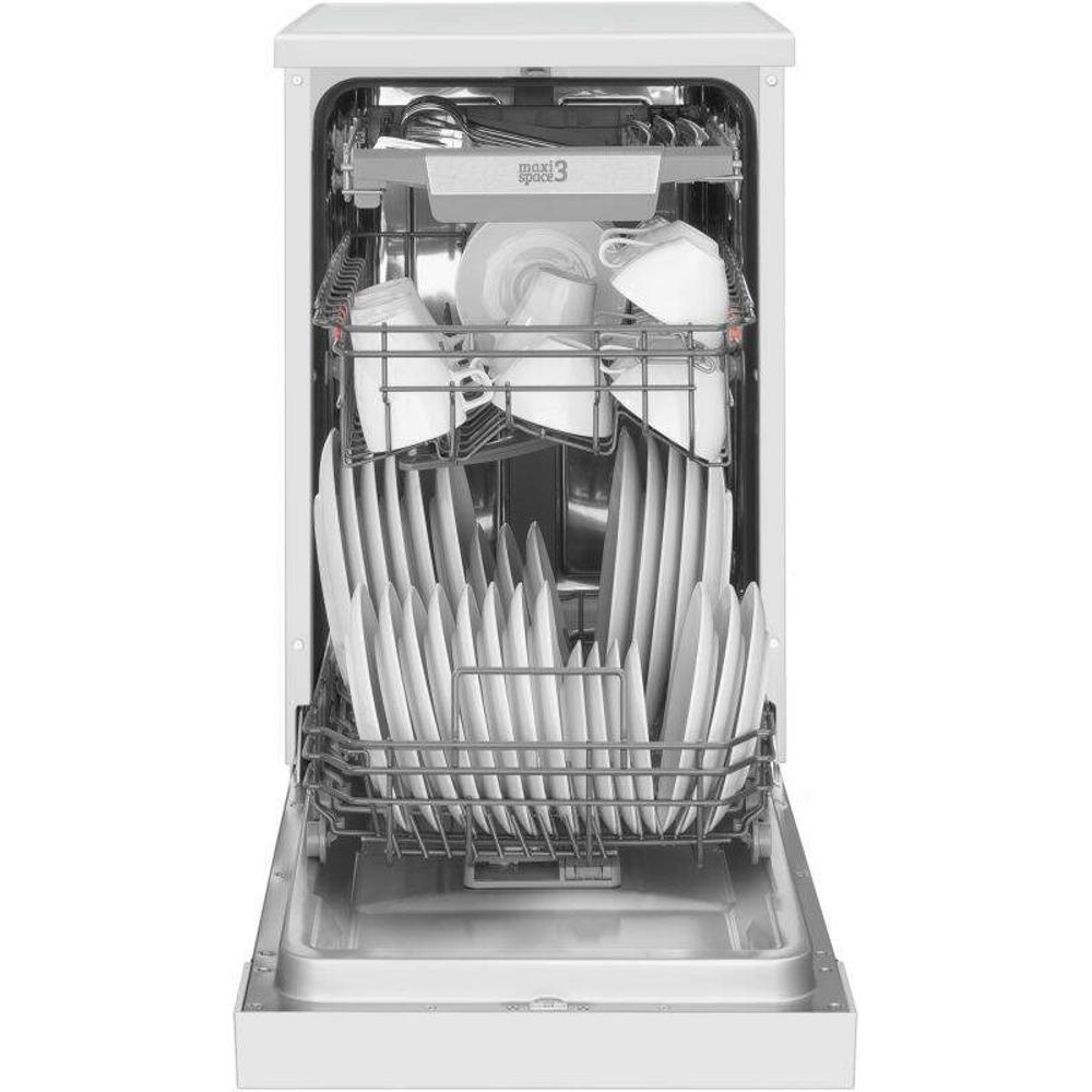 Voľne stojaca umývačka riadu; Farba Biela; Kapacita: 10 súprav riadu; Spotreba vody: 8,5 litrov; Spotreba energie: 0,674 kWh; Hlučnosť: 44 dB; Energetická trieda: D; Index účinnosti čistenia: 1,13; Index účinnosti sušenia: 1,07; LED displej; 7 umývacích programov; Auto 55-65ºC / 80 ~ 150min, Intenzívny 65 ℃ / 205min, Hygienický 70 ℃ / 200min, Eco 50 ℃ / 198min, Sklo 50 ℃ / 120min, Hodinový 55 ℃ / 60min, Krátky 40 ℃ / 30min; Odložený štart: 1-24 h; Zónové umývanie; Ukazovatele soli a leštidla; Podpora tabliet 3v1; Aquasenzor pre kontrolu znečistenia vody; Automatické otvorenie dverí po domytí; Zvukový signál ukončenia umývania; Detský zámok; Steam Power – parná funkcia, ktorá ničí baktérie; 3. kôš na príbory; Výškovo nastaviteľný horný kôš; Aqua spray – 3 nezávislé sprchujúce ramená; Aquastop; Možnosť podstavby (výška po odstránení poklopu 81,5 cm); Antibakteriálny filter; Ročná spotreba energie: 188 kWh; Ročná spotreba vody: 2380 litrov