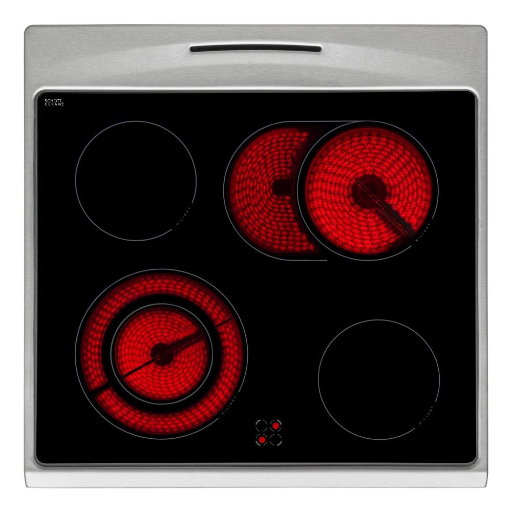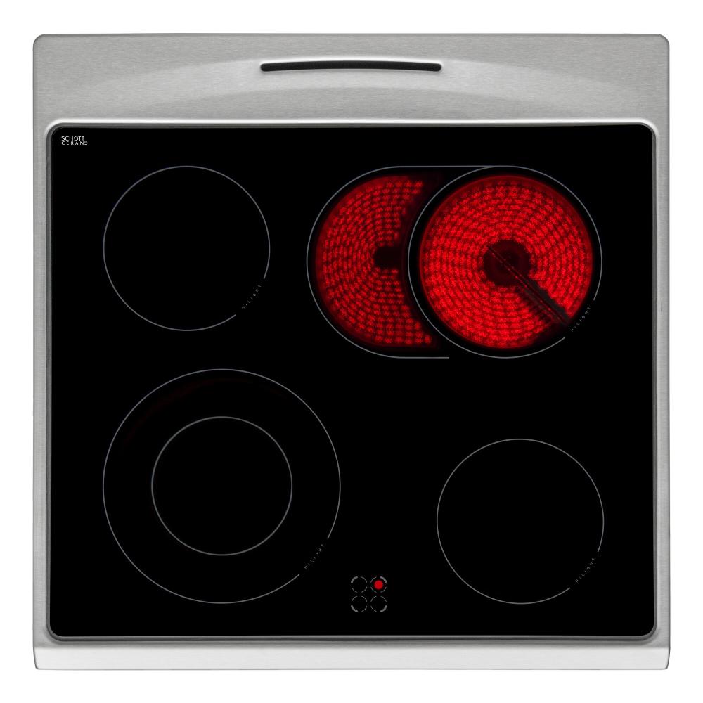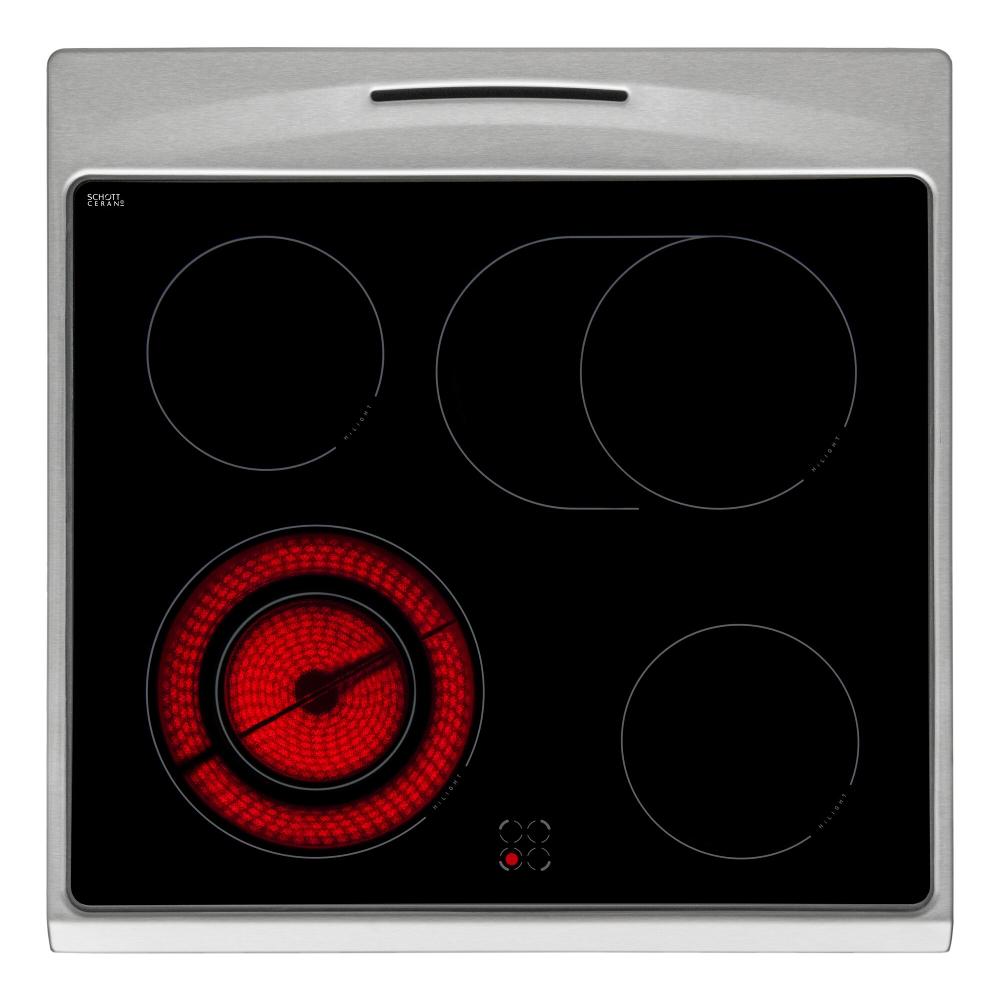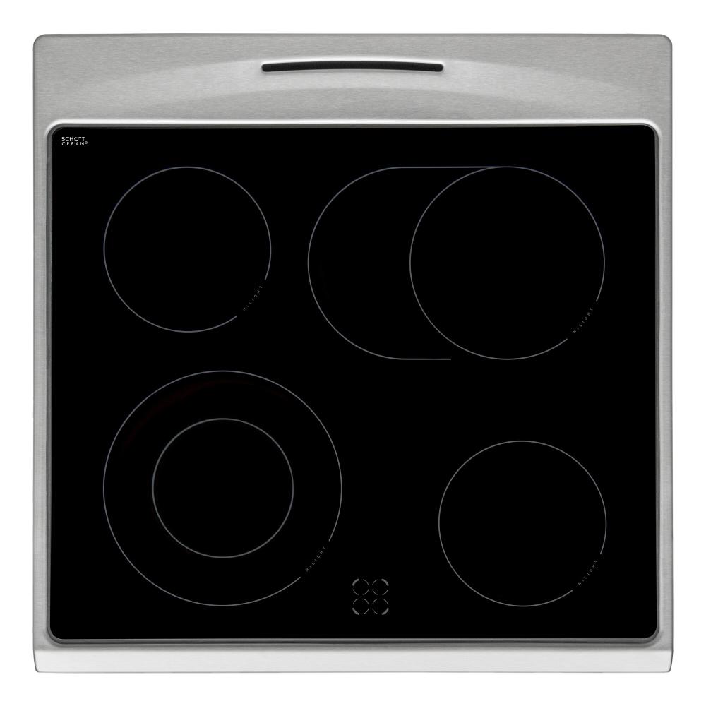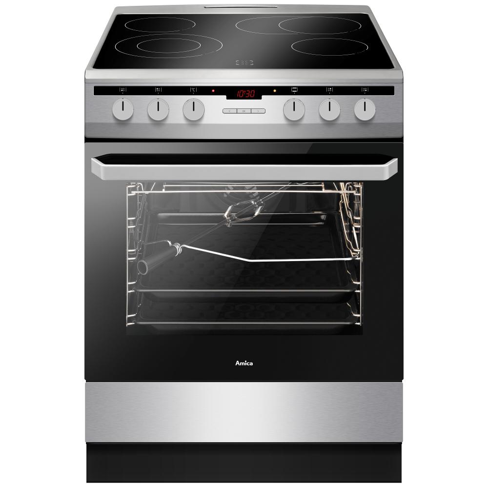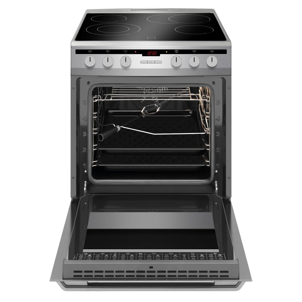Sporák sklokeramický, Energetická trieda A, Vnútorný objem rúry 65 l, Celkový príkon 9,9 kW, Horné výhrevné teleso 900 W, Spodné výhrevné teleso 1100 W, Zadné kruhové výhrevné teleso 2000 W, Elektrický gril 2000 W, Typ rúry: Elektrická, Počet funkcií: 10 funkcií rúry vr. horúceho vzduchu, Super rýchly ohrev, Tá programátor, Výsuvný odkladací priestor, Katalytické samočistiace dosky, Počet plechov: 1, Rozmrazovanie, Bočné závesné lišty plechov, Displej, Typ predných dvierok: CoolDoor3, Farba nerez, Rozmery: (V x Š x H) 85 x 60 x 60 cm