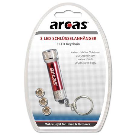 ARCAS 3 LED, Kľúčenka s baterkou – extra stabilné hliníkové puzdro, 3 veľmi jasné LED diódy, Životnosť LED až 100 000 hodín, stabilný krúžok na kľúče, tenký a elegantný dizajn, ideálne do práce, na voľný čas, cestovanie, Obsahuje 3 x AG13 alkalické gombíkové články, rozmery: 7,2 cm x priemer 1,6 cm