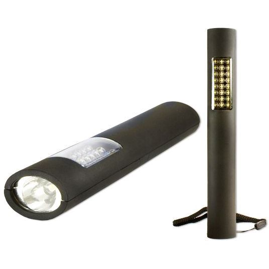 Užitočná baterka s magnetom na pripevnenie, ideálne na kempovanie. Je možné použiť ako stropné svietidlo do stanu aj ako ručnú baterku. 24 LED + 1 predná vysokosvietivá 1W LED, výdrž až 100 000 hodín. Napájanie 4x AAA batérie (nie je súčasťou balenia).