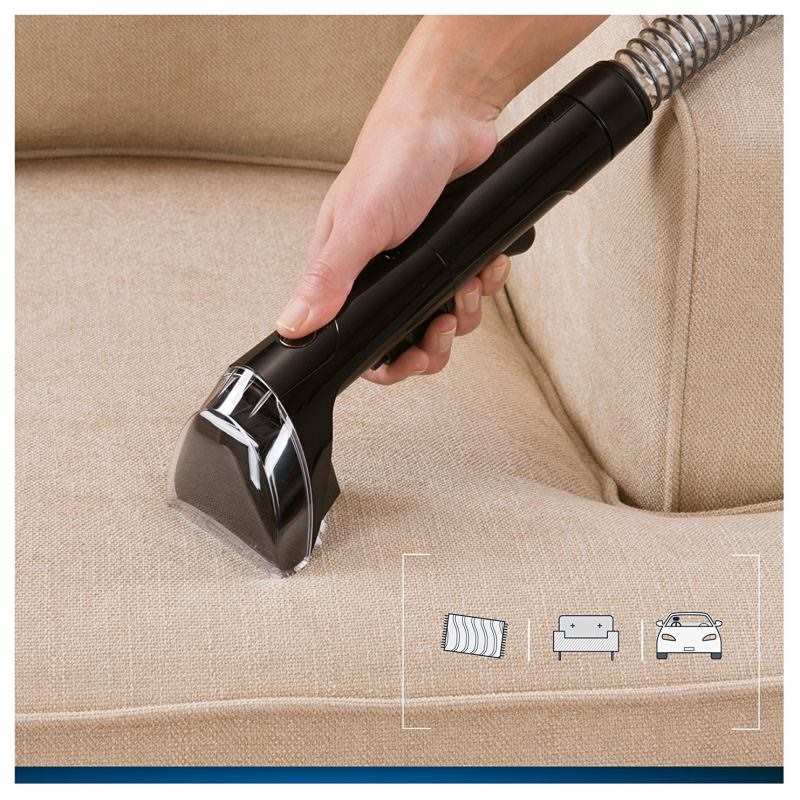Vysávač Bissel SpotClean Pro dokáže efektívne odstrániť škvrny vďaka kombinácii účinného sania, kvalitných kief a čistiaceho roztoku. Dlhá hadica vysávača a úplne vyhovujúca dĺžka napájacieho kábla vám hravo umožnia vyčistiť aj ťažko prístupné oblasti, schody, rohožky, čalúnenie a vystlanie. Vysávač disponuje vysokokapacitnou nádržou, takže ju nie je nutné často dopĺňať.