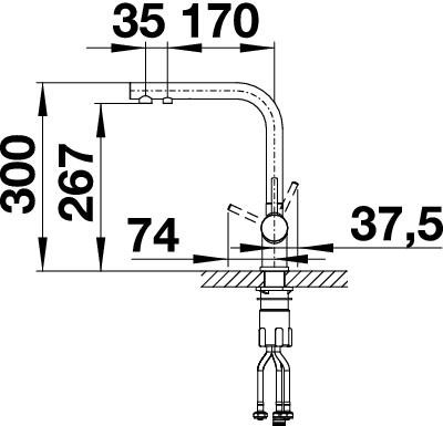 • komfortná 2-v-1-batéria s ovládaním vpravo pre teplú a studenú vodu a s ovládaním vľavo pre filtrovanú vodu