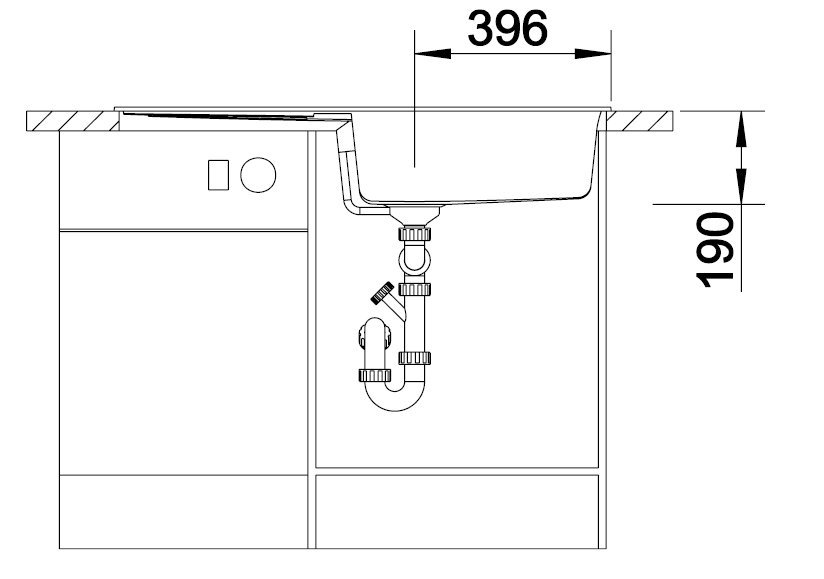Odtoková armatúra, 3 ½“ výpusť so sitkom, bez excentrického ovládania, zápachový uzáver s odbočkou pre umývačku riadu