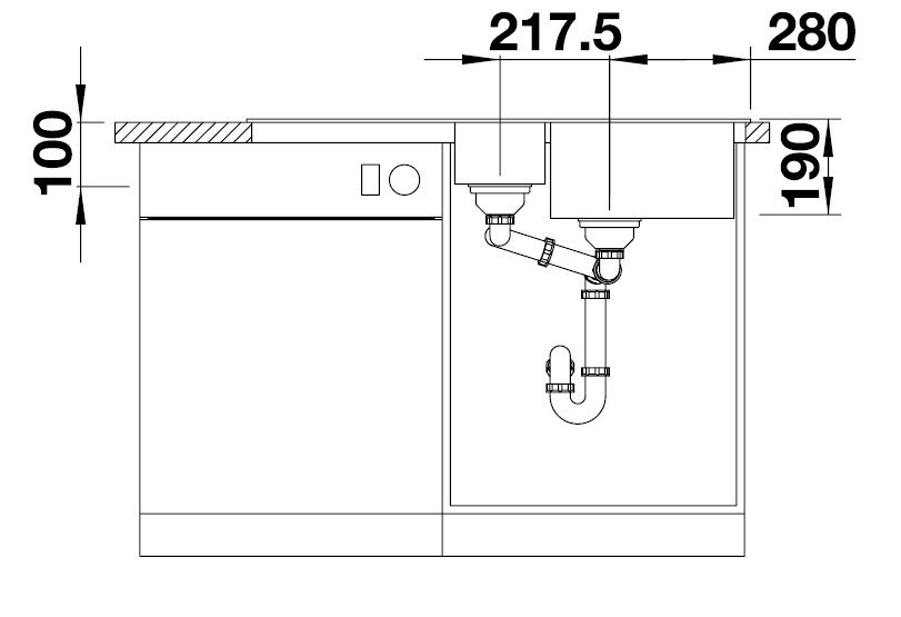 Odtoková armatúra, dve 3 ½“ výpuste so sitkami, zápachový uzáver s odbočkou pre umývačku riadu