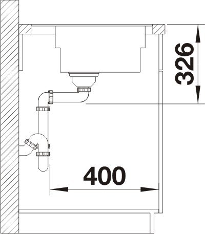 Doska na krájanie z masívneho jaseňa alebo satinovaného skla, perforovaná GN 1/3 parná nádoba, perforovaná GN ½ parná nádoba, odtoková armatúra, 3 ½“ výpusť so sitkom, excentrické ovládanie, zápachový uzáver s odbočkou pre umývačku riadu