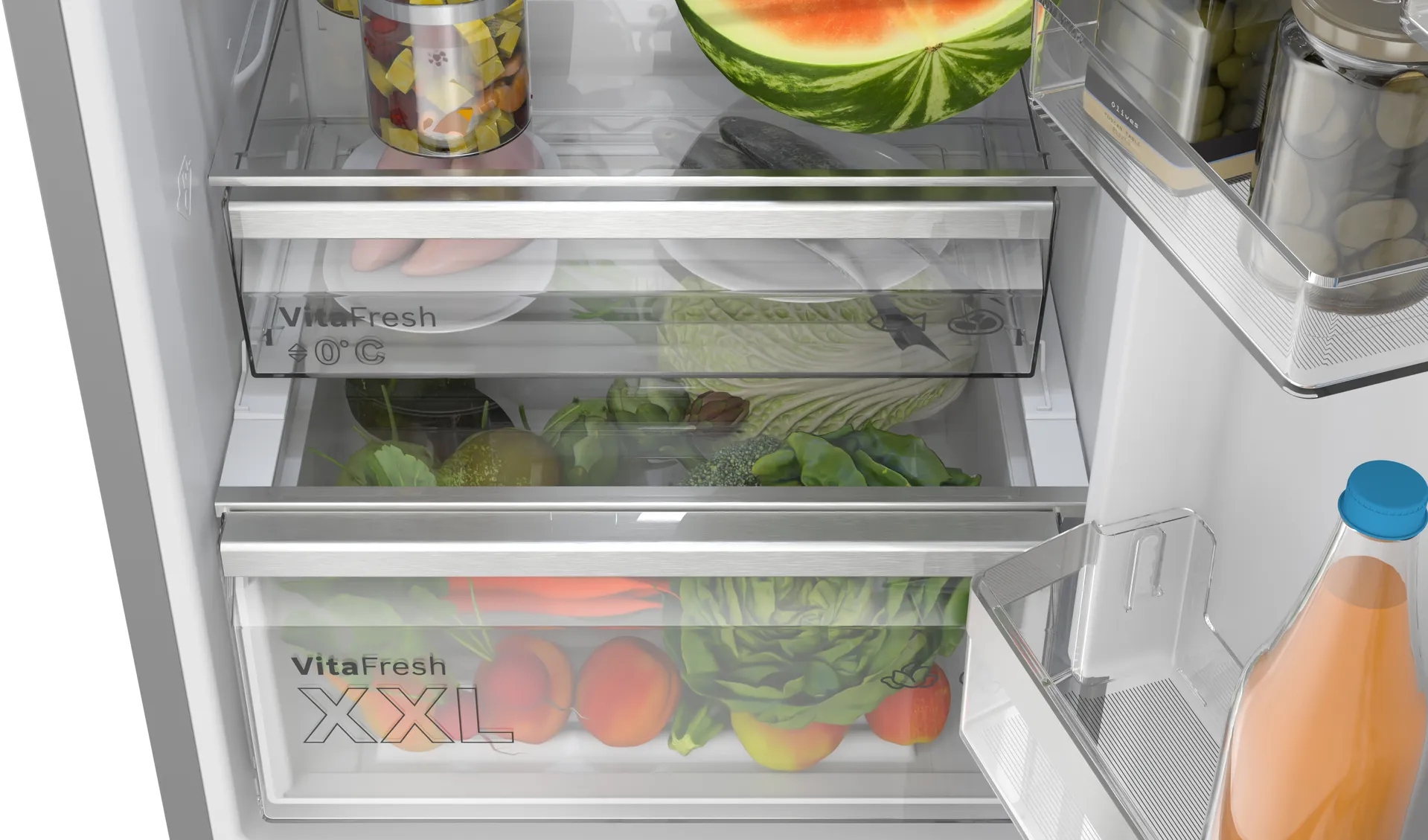 203 cm, chlad. 260l, mraz. 103l, 112 kWh/365 dní, LED-elektronické ovládanie, Total No Frost, VitaFresh XXL , matná oceľ AFP, auto. super mrazenie, ext. mádlo, Bottle Rack, 29 dB