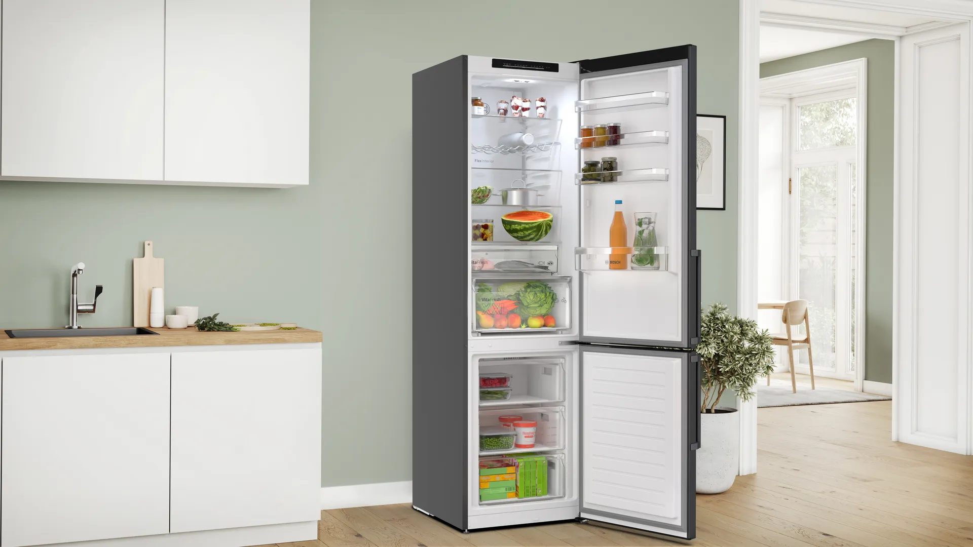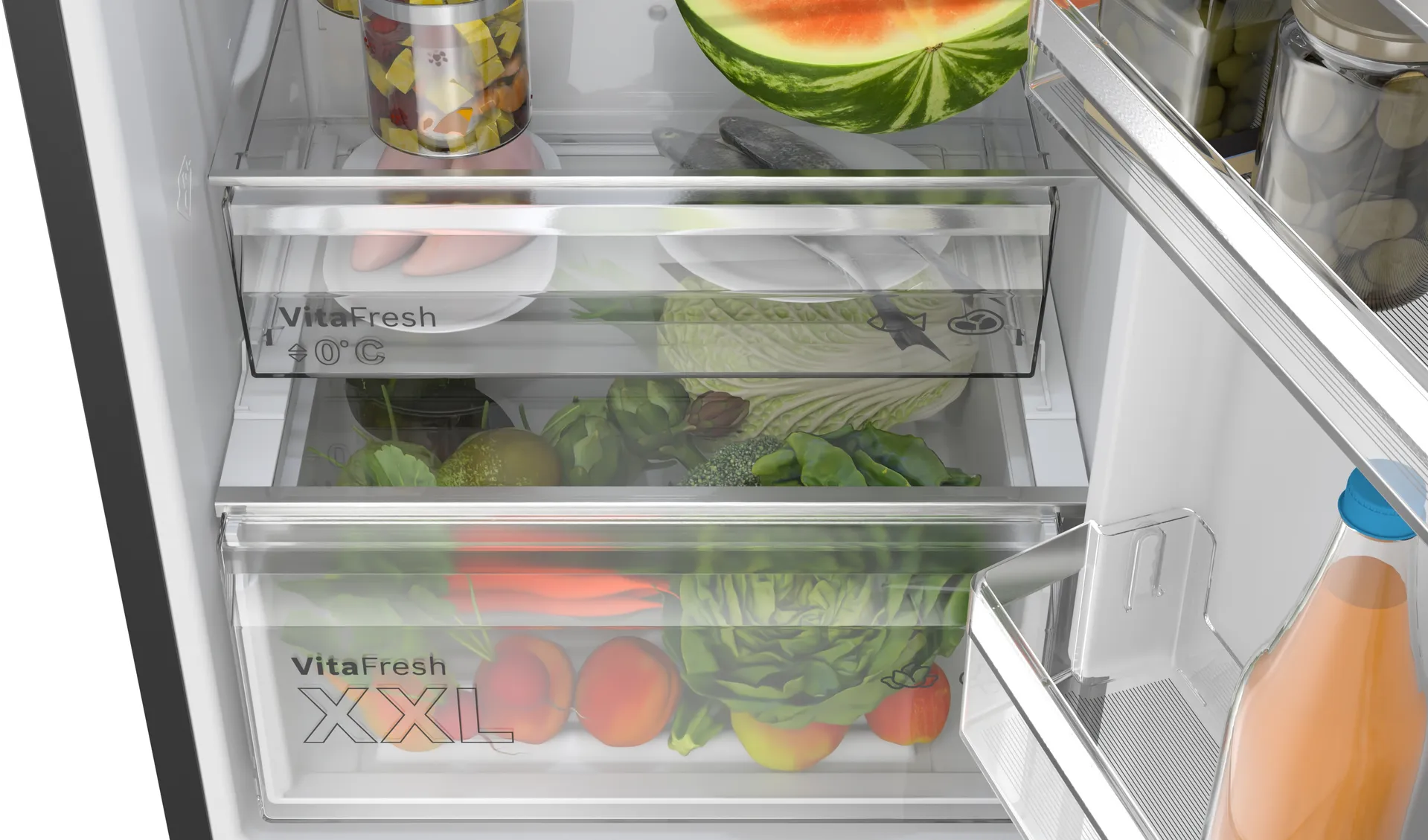 203 cm, chlad. 260l, mraz. 103l, 112 kWh/365 dní, LED-elektronické ovládanie, Total No Frost, VitaFresh XXL , čierna matná oceľ AFP, auto. super mrazenie, ext. mádlo, Bottle Rack, 29 dB