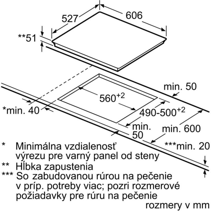 pre inštaláciu (V x Š x H): 51 mm x 560 mm x 490 mm