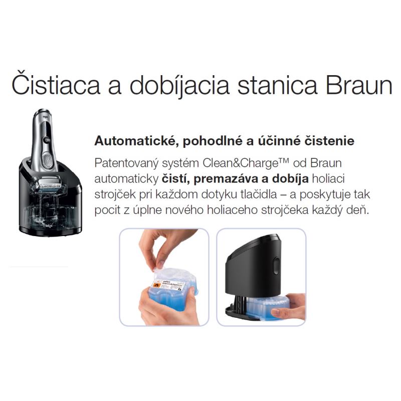 ? Braun ako jediný výrobca používa čistiacu tekutinu na báze alkoholu, ktoré v každom čistiacom cykle zničí 99,999% všetkých baktérií. Testy preukázali, že použitie čistiacej stanice je desaťkrát hygienickejšie než samotné opláchnutie holiaceho strojčeka pod tečúcou vodou.