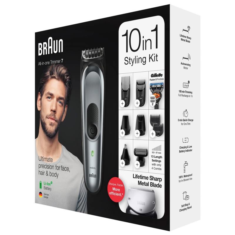 Zastrihávač na vlasy, na fúzy a na telo, materiál britiev oceľ, min. dĺžka strihu 0.5 mm, max. dĺžka strihu 21 mm, počet nastavení strihu 13, multifunkčný, umývateľné nadstavce, vodoodolný, na mokré použitie, rýchle nabitie, led indikátor nabíjania a vymeniteľné nadstavce, dĺžka prevádzky 100 min, čas nabíjania 60 min, napájanie akumulátorové, ovládanie pomocou tlačidiel