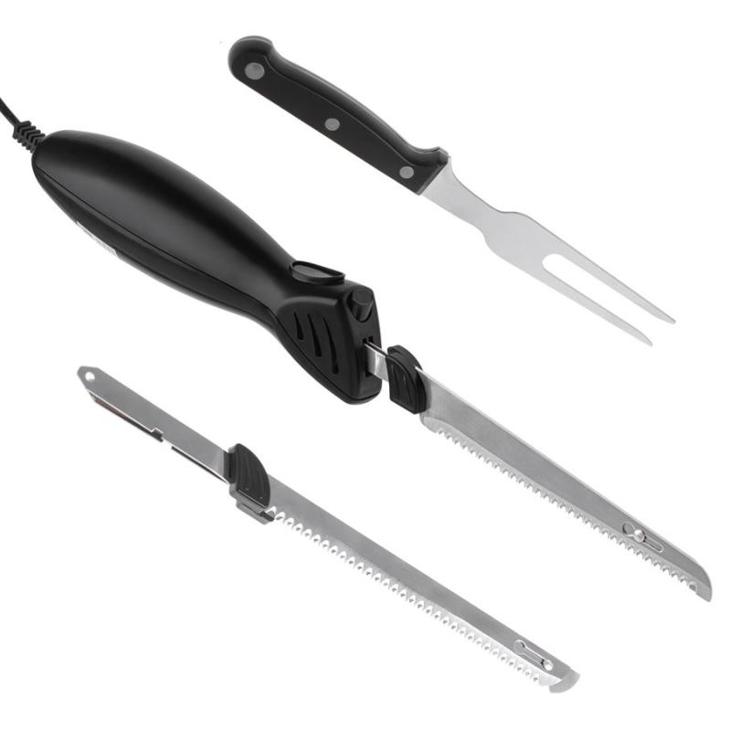Elektrický nôž Camry CR4513 je spoľahlivý a všestranný kuchynský nástroj, ktorý uľahčí každodennú prípravu jedál. Vďaka vysokokvalitným čepeliam z nehrdzavejúcej ocele je tento elektrický nôž dokonalým riešením na krájanie mrazených potravín a rôznych potravinárskych výrobkov. Sada obsahuje dva rôzne nože a vidličku, čo z nej robí neoceniteľného pomocníka v každej kuchyni. Dĺžka napájacieho kábla je 100 cm, čo zaisťuje veľkú voľnosť pohybu pri práci. Nôž s dĺžkou 29 cm a čepeľou 17 cm je kompaktný, ale veľmi efektívny nástroj. Maximálny výkon 200 W zaručuje rýchle a presné krájanie, ktoré šetrí čas a znižuje námahu v kuchyni.