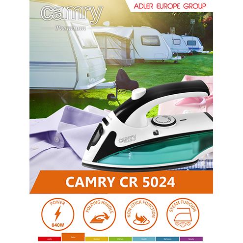 Cestovná žehlička s výkonom 840 W, ktorá je ideálna na cestovanie. Bola pripravený pre ľudí, ktorí sa starajú o elegantný výzor aj na takých miestach, kde nie je k dispozícii žehlička. Vďaka svojím malým rozmerom sa ľahko skryje do každej batožiny. Je ľahko ovládateľná a mimoriadne ľahká (len 0,6 kg). Umožňuje rýchlo upraviť teplotu. Značky na gombíku umožňujú nastaviť teplotu na typ žehleného materiálu.