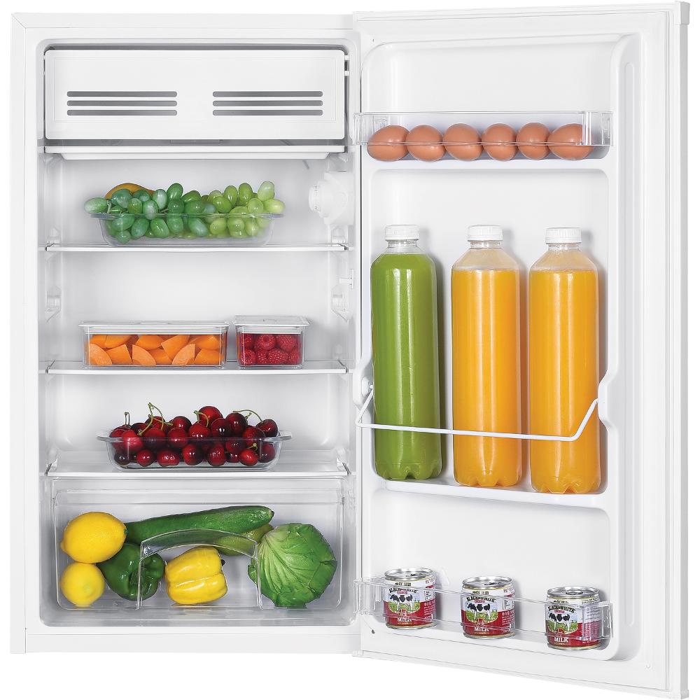 Voľne stojaca chladnička, COHS 38EW36, Trieda energetickej účinnosti E, Celkový čistý objem chladničky 90 l, Spotreba energie za deň 0,232 kWh/24 hod, Ročná spotreba energie 85 kWh/rok, Úroveň emisií hluku šíreného vzduchom 39 dB(A) re 1 pW, Emisná trieda hluku šíreného vzduchom C, Klimatická trieda N–ST 16° – 38°C, Trieda energetickej účinnosti svetla G, Vlastnosti, Statické chladenie, Manuálne odmrazovanie chladničky, Mechanický termostat, Chladnička, 2+1 sklenené police, 3 priehradky vo dverách chladničky, Zásuvka na zeleninu, Chladiaca zóna Ice Box, 1 priehradka s poklopom, Konštrukcia, Osvetlenie LED, Výmenný záves dverí, 2 nastaviteľné nožičky, Rozmery 850 × 480 × 450 mm, Hmotnosť 20 kg, Farba Biela