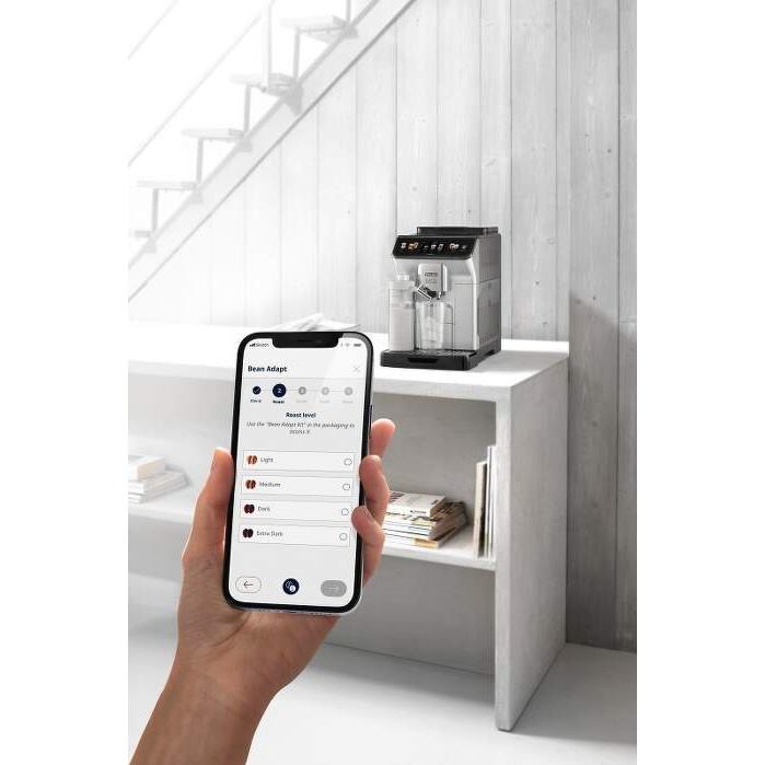 DeLonghi Eletta Explore, Plnoautomatický kávovar, strieborný (ECAM 22.112.B) – Automatické espresso, Smart ovládanie mobilom, Maximálny prevádzkový tlak: 19 Bar, Mletá káva, Spôsob prípravy mliečnej peny: nádoba na mlieko, Objem vodného zásobníka: 1800 ml, Objem nádoby na kávové zrná: 300 g, Odvápňovací systém, Vstavaný displej, Samočistenie, Počet prednastavených nápojov: 50, Cappuccino 1 tlačidlom, Automatické vypnutie, Výška: 38,5 cm, Šírka: 26 cm, Hĺbka: 45 cm, Hmotnosť: 11,4 kg, Farba: strieborná