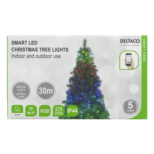 DELTACO SMART HOME WiFi osvetlenie vianočného stromčeka vnútorné / vonkajšie, RGB, 10-strunové 270-LED diód, IP-44, 2m.