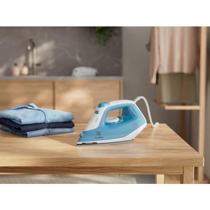 Ľahká žehlička pre jednoduchú starostlivosť o odevy. Pohodlne sa drží v ruke a vďaka pohodlnej veľkosti sa ľahko skladuje.