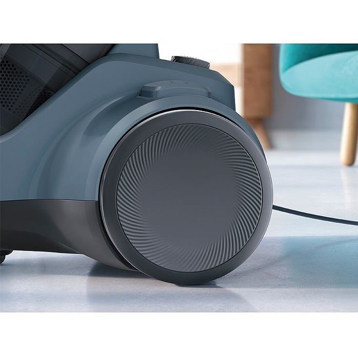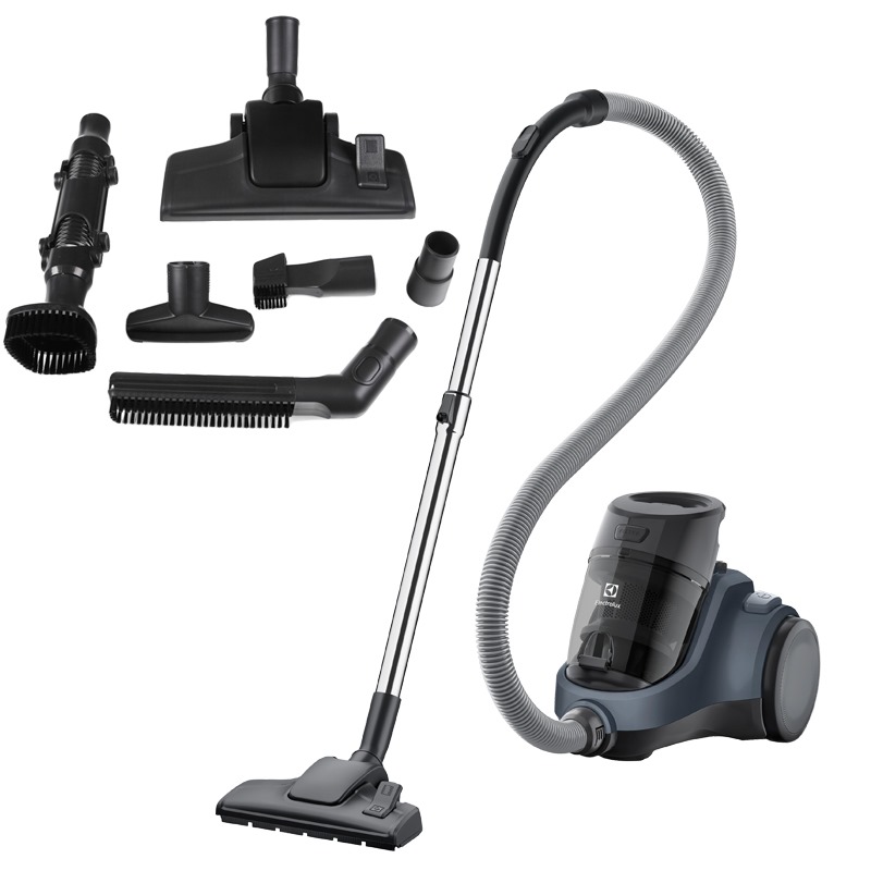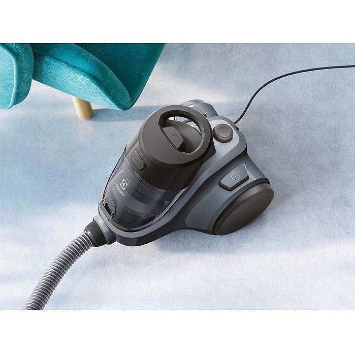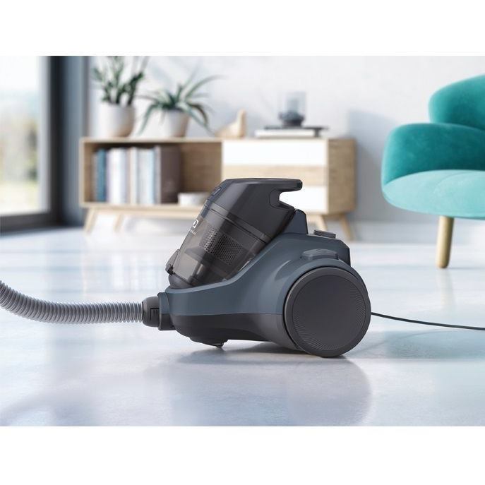 Bezvreckový podlahový vysávač Electrolux EC41-6DB Easy C4 zaručí účinnejšie vysávanie a nižšiu spotrebu energie, kde využíva štvorfázovú filtráciu k účinnému oddeleniu prachu. Dvojstupňová cyklónová technológia oddeľuje veľké a malé častice pre efektívnejšie vysávanie s lepšou filtráciou. Prach a nečistoty sú zachytávané do nádoby s objemom 1,8 l. Pre pohodlnejší pohyb sú prispôsobené mäkké kolieska, ktoré neškriabu podlahu. Hlučnosť vysávača nepresiahne hodnotu 80 dB. Farba: modrá riflová