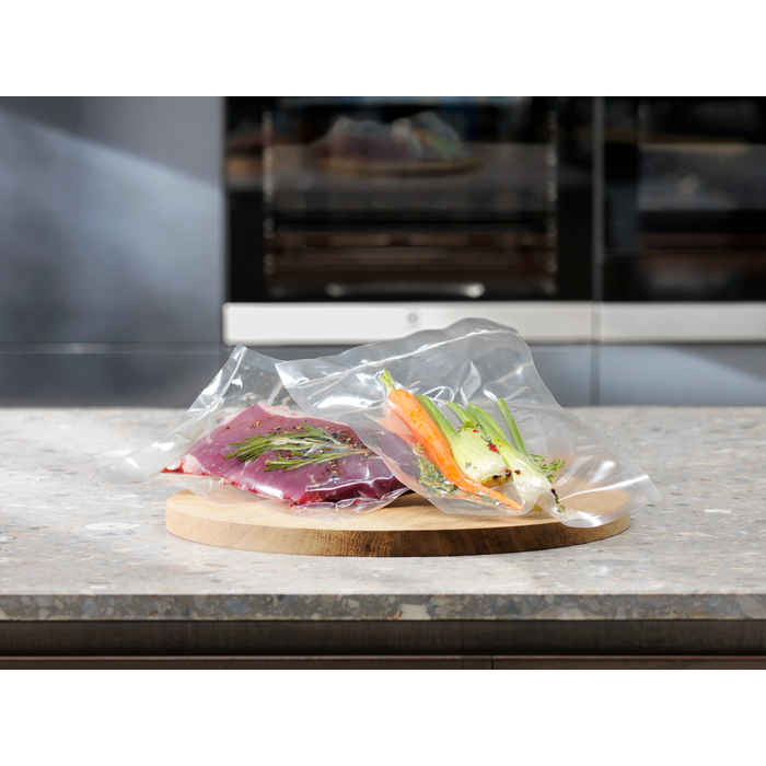 „Odomknite dokonalosť a Sous-Vide u vás doma. Presne ovládané teploty sú kľúčom k Sous-Vide a vďaka našej precíznej technológii je ich teraz jednoduché dosiahnuť. Vzduchotesné vrecká vylepšujú príchute, zatiaľ čo para zachováva chuť a výživné látky. “