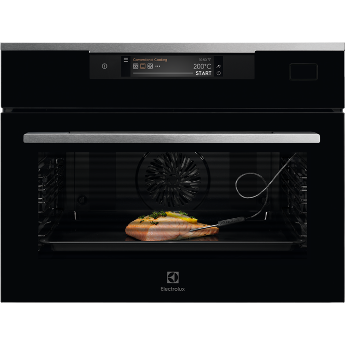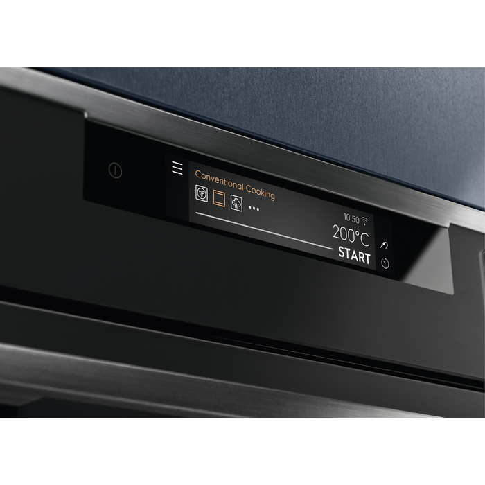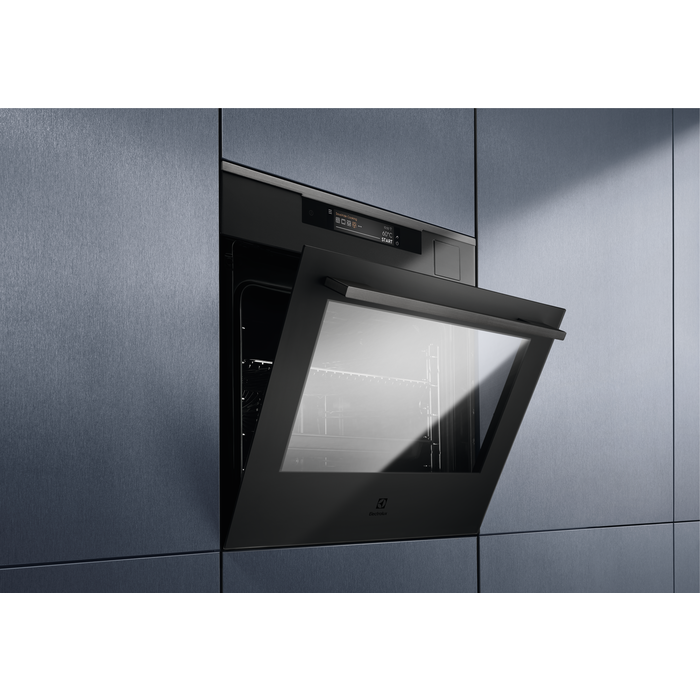 Vstavaná rúra s parnou funkciou; Electrolux 900 PRO SteamPro KOAAS31WT; Šírka (cm): 60; En.trieda: A ++; Technológia: SteamPro / Wi-Fi / Steamify; Samočistenie: Parné; Vnútorný objem (l): 70; Ovládanie: Dotykové intuitívne ovládanie, LCD displej; Teleskopické výsuvy: Áno; Teplotná sonda: Áno; Softclosing: Áno; Farba: Matt Black; Počet skiel: 4; Rozmer VxŠxH (mm): 594x595x567; 5 rokov záruka na celý model: Nie