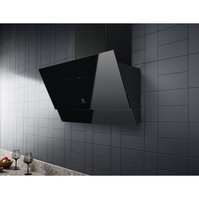 Štíhly sklenený panel zjednocuje nastavenia odsávača pár pre rýchle a účinné vetranie v kuchyni. Absolútna presnosť dotykom jediného tlačidla.