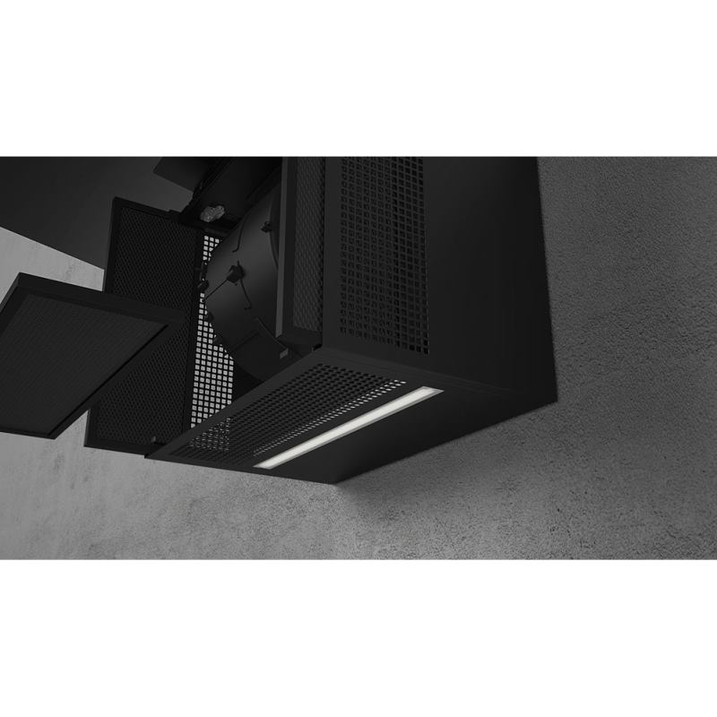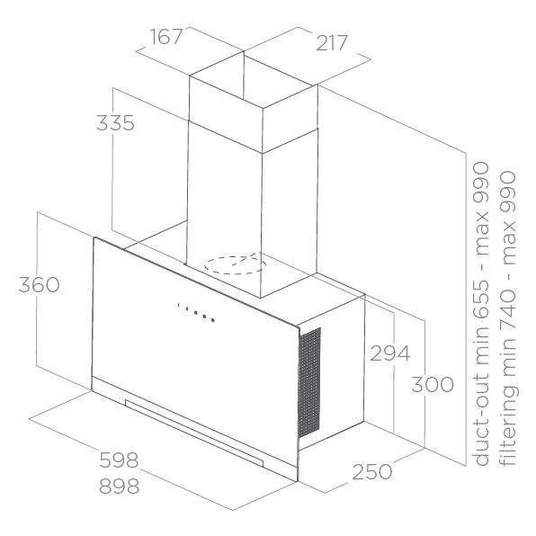 Digestor komínový, energetická trieda A, hlučnosť 64dB, výkon odsávania 680m3/hod, počet stupňov výkonu: 3, počet filtrov: 3, typ filtra: tukový, priemer horného vývodu 150mm, LED osvetlenie, šírka 90cm, farba: čierna