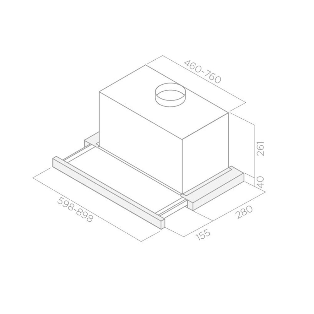 Výsuvný odsávač pár Energetická trieda C Hlučnosť 65 dB Sací výkon: 581 m3/h Priemer výstupného otvoru: 150 mm Mechanické tlačítka 1 motor Tukový filter: hliníkový Farba nerez Šírka 60 cm