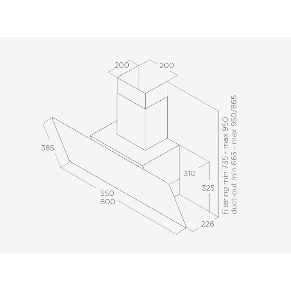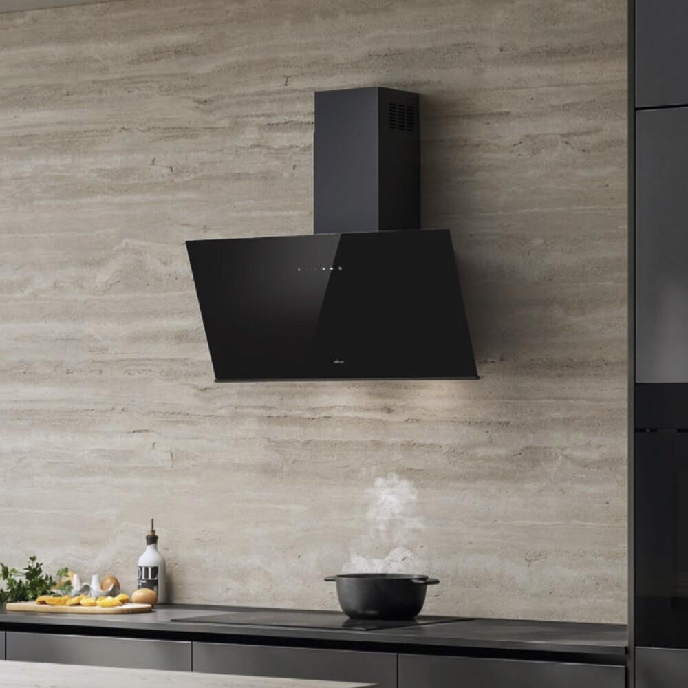 Dva prevádzkové režimy – odťah alebo recirkulácia, 4 stupne výkonu (3 + intenzívne), Vysoký sací výkon: 300-670 m³/h, Tichá prevádzka: 51-67 dB(A), LED osvetlenie 2×2,5W (3500K) s nastaviteľnou intenzitou, Dotykové ovládanie, Funkcia časovača s automatickým vypnutím, Špeciálny systém proti kondenzácii, Unikátny systém proti kondenzácii:, Špeciálna čierna hliníková lišta ako rezervoár kondenzátu, Špeciálny tukový ALU filter odvádzajúci kondenzát, Ochrana varnej dosky pred kvapkajúcou vodou, Technické parametre:, Šírka: 80 cm, Prevedenie: čierne tvrdené sklo, Priemer odťahu: 150 mm, Príkon: 275 W, Výkonové stupne:, 1. stupeň: 300 m³/h (51 dB), 2. stupeň: 357 m³/h (56 dB), 3. stupeň: 530 m³/h (63 dB), Intenzívna: 670 m³/h (67 dB), Voliteľný Long Life filter:, Životnosť až 3 roky, Jednoduchá údržba každé 2-3 mesiace, Možnosť umývania v umývačke pri 65°C, Regenerácia v rúre pri 100 ° C po dobu 10 minút, Súčasť balenia:, Odsávač pár, Hliníkový tukový filter, Dekoratívne kolienko v čiernej fa