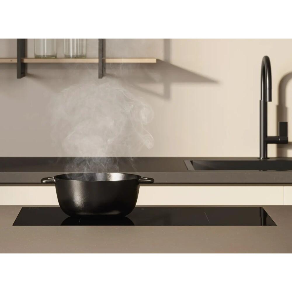 Úzka 87 cm široká indukčná varná doska s výrazne minimalistickým dizajnom a vynikajúcou ergonómiou. Celosklenený čierny povrch, jemné serigrafické detaily, posuvné ovládanie. A mnoho varných funkcií, ktoré zaisťujú vynikajúci výkon.