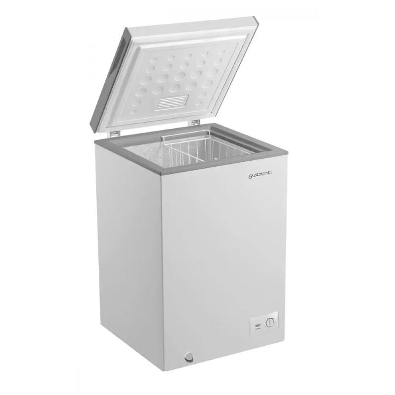 Pultová mraznička v energetickej triede F disponuje objemom 98 litrov. Mraznička Guzzanti GZ 101S s termostatom poskytuje dostatok priestoru pre všetky vaše potraviny. Mraznička v bielom prevedení vydrží 24 hodín prevádzky po výpadku prúdu.