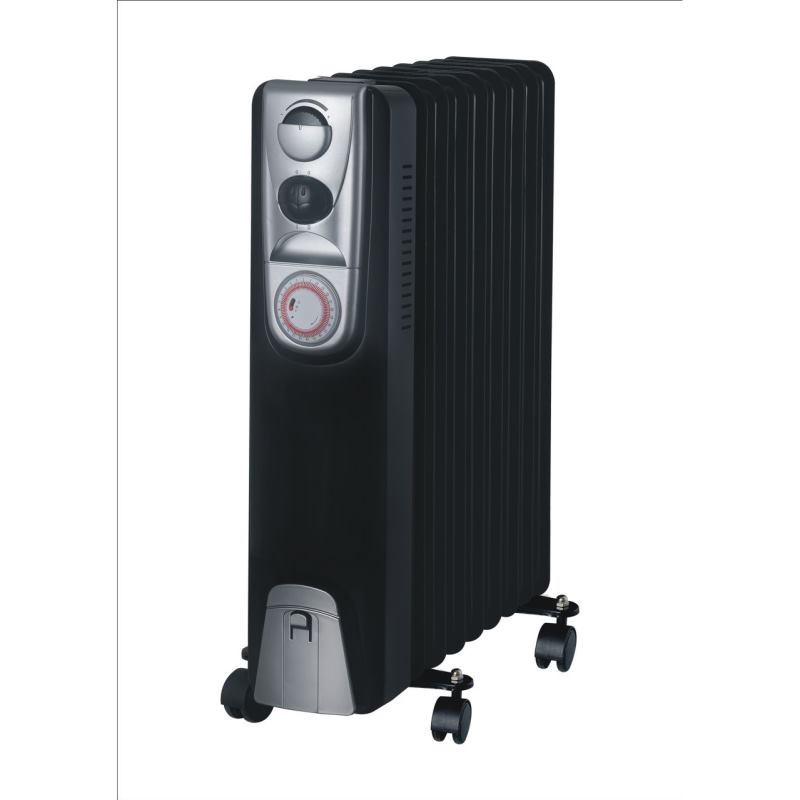 Olejový radiátor, Tichý a rýchly spôsob vykurovania. 9 rebier, 3 stupne nastavenia výkonu (800 W, 1200 W, 2000 W), 24h časovač, s nastaviteľnými intervalmi prevádzky, Termostat pre plynulú reguláciu teploty v miestnosti, Poistka proti prehriatiu, Ochrana pre prípad prevrátenia, Svetelná kontrolka prevádzky, Priestor na navinutie napájacieho kábla, 4 kolieska pre ľahké premiestnenie, Bezúdržbová prevádzka