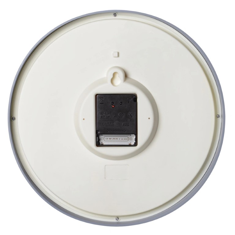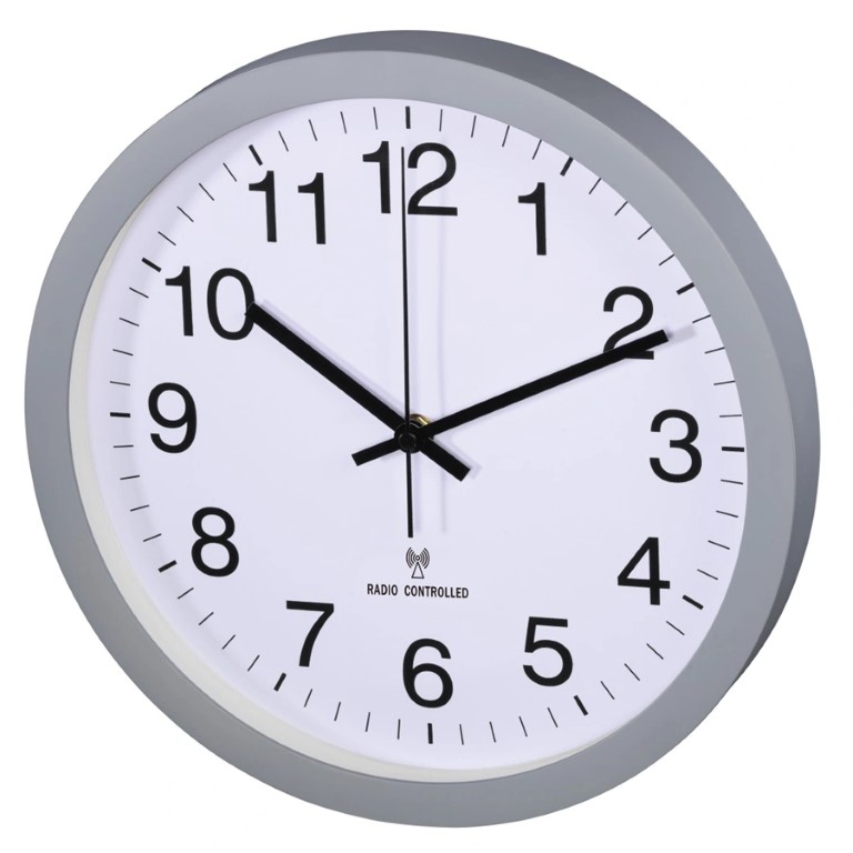 Hodiny riadené rádiovým signálom DCF (automatické nastavenie času podľa najpresnejších hodín sveta), analógové zobrazenie času, plynulý pohyb sekundovej ručičky pre tichý chod bez hlasného tikania, veľký biely ciferník s arabskými číslicami, hodinová, minútová a sekundová ručička, rozmery: hĺbka: 4 cm, priemer: 30 cm, hmotnosť: 720 g, napájanie: 1x AA Mignon (súčasť balenia), materiál obruby/krytu: plast/sklo, farba obruby/ciferníku: šedá/biela