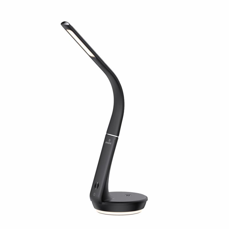 HAWK HW-LAMP02, Stolová LED lampa s Qi nabíjaním – Výkon 3,5W, 3-stupňová regulácia jasu hlavného svetla, Nočná lampička s 3 úrovňami osvetlenia, Funkcia bezdrôtovej nabíjačky s výkonom až 10W, USB-C napájací konektor (adaptér je súčasťou balenia), Jednoduché nastavenie vďaka flexibilnému ramenu, Materiál imitujúci kožu