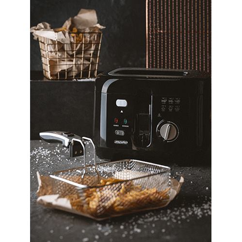 Fritéza Mesko MS 4908 s kapacitou 2,5 l je vynikajúca pri príprave vyprážaných jedál pre celú rodinu. Vďaka fritéze AD4906 môžete doma smažiť hranolky, cibuľové krúžky, zeleninu alebo mäso. Samotné zariadenie má silný výkon 1800 W. Fritéza sa dá bezpečne používať, napriek tomu sa ľahko čistí a skladuje. Toto je okrem iného zabezpečené odnímateľným olejovým zásobníkom, účinným filtrom zabudovaným do veka, košom s funkciou zdvíhania a rukoväťou chladnou na dotyk na jeho odobratie. Fritéza MS 4908 je tiež vybavená systémom ochrany pred prehriatím. Každé jedlo bude vďaka zabudovanému termostatu správne prepečené.