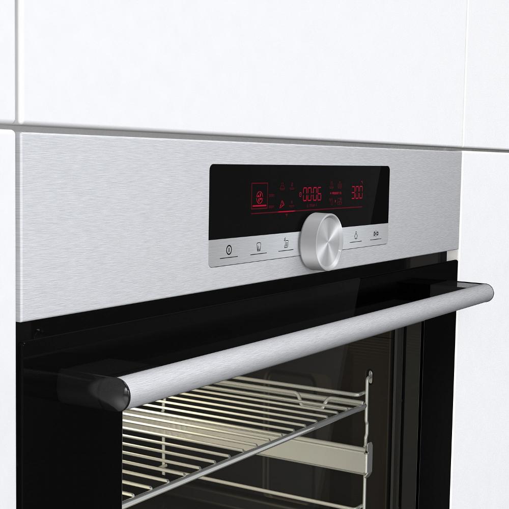 Elektrická rúra samostatná s funkciou pary, HomeMade tvar rúry, objem rúry 77 l, ergonomický gombík pre potvrdenie a výber nastavenia, dotykové programovateľné hodiny so zobrazením teploty a spôsobu ohrevu, programovanie doby pečenia/odloženie štartu s automatickým vypnutím, kuchynská minútka, multifunkčná rúra 22 funkcií, možnosť regulácie teploty 30-300 °C, automatické režimy pečenia: Pizza 300 °C, pomalé pečení, mrazené a hotové jedlá, teplovzdušné fritovanie bez tuku, 22 automatických programov pečenia, funkcia pečenie v krokoch, gratinovanie, sabat, auto predhrievanie, EXTRA PARA 3 programy pečenia v pare, rýchle predhriatie rúry, rozmrazovanie, ohrev tanierov/jedla, výsuvné teleskopické rošty (1 úroveň) s klik systémom, tlmené zatváranie & tlmené otváranie dvierok, ECO CLEAN funkcia ekologického čistenia rúry parou, katalytický kryt ventilátora – funkcia samočistenia, nerez s úpravou proti odtlačkom prstov, dvojité osvetlenie rúry, personalizácia nastavení (denný čas, hlasito
