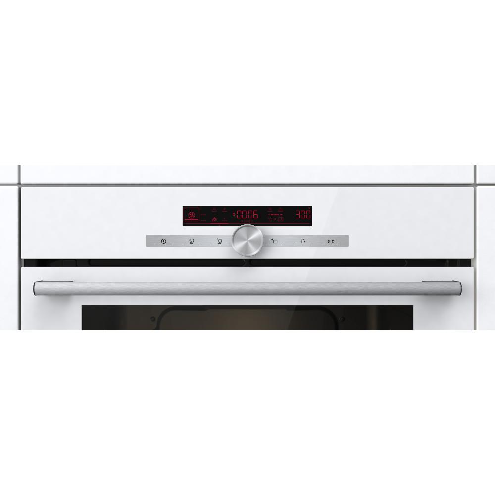 Elektrická rúra samostatná s funkciou pary, Klenutý tvar rúry, Objem rúry 77 l, Ergonomický gombík pre potvrdenie a výber nastavenia, Dotykové programovateľné hodiny so zobrazením teploty a spôsobu ohrevu, Programovanie doby pečenia, Odloženie štartu s automatickým vypnutím, Kuchynská minútka, Multifunkčná rúra 22 funkcií, Možnosť regulácie teploty 30-300 °C, Automatické režimy pečenia: Pizza 300 °C, pomalé pečenie, mrazené a hotové jedlá, teplovzdušné fritovanie bez tuku, 22 automatických programov pečenia, Funkcia pečenia v krokoch, Gratinovanie, Sabat, Auto predhrievanie, EXTRA PARA 3 programy pečenia v pare, Rýchly predohrev rúry, Rozmrazovanie ohrev tanierov/jedla, Výsuvné teleskopické rošty (1 úroveň), Tlmené zatváranie & tlmené otváranie dvierok, ECO CLEAN funkcia ekologického čistenia rúry parou, Dvojité osvetlenie rúry, Personalizácia nastavenia (denný čas, hlasitosť zvukového signálu, displej), Pamäť posledného nastavenia času pečenia, Trojité sklo dvierok s tepelným defl